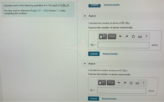 | Title: Calculate Each Of The Following Quantities In 0 160 Chegg Calculate The Number Of H Atoms In 0.190 Mole C6h14o |